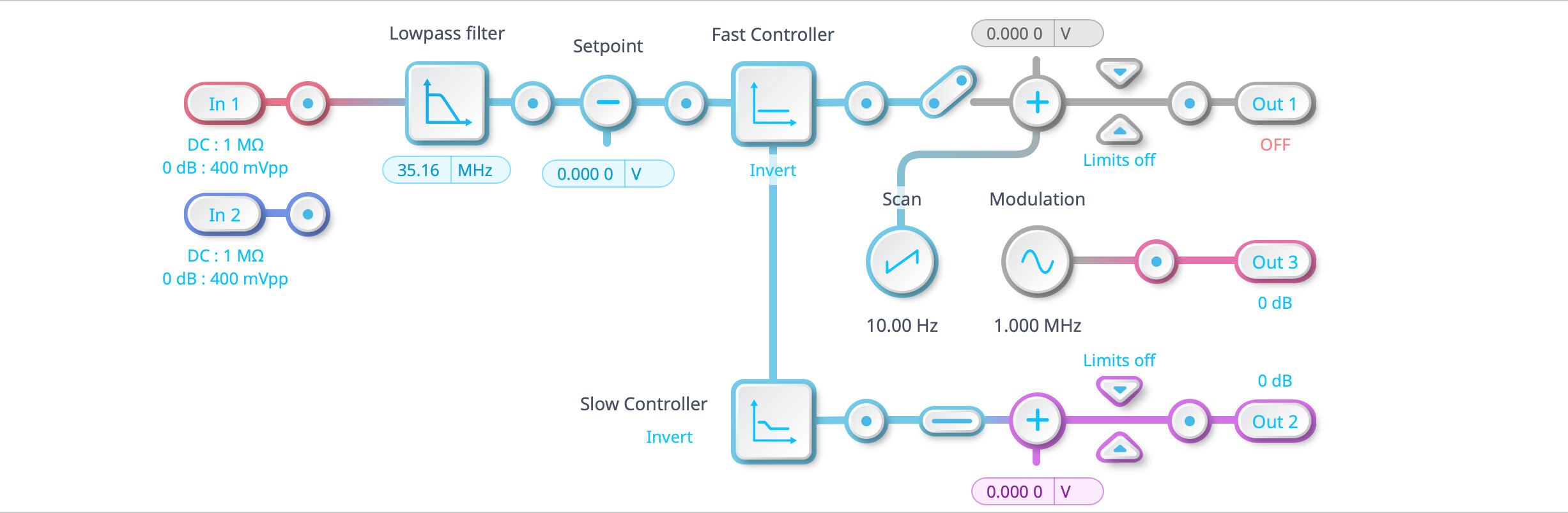 I’ve been trying to control a rather slow time constant system for temperature control and having a minimum integral gain of 0dB is somewhat frustrating. I can achieve the time response I desire by setting a low proportional gain, but then this limits the systems overall response range. For now I can manage by adjusting the offset manually through the api, but it would be nice if the PID controller offered a slow controller option like in the laser lock box.